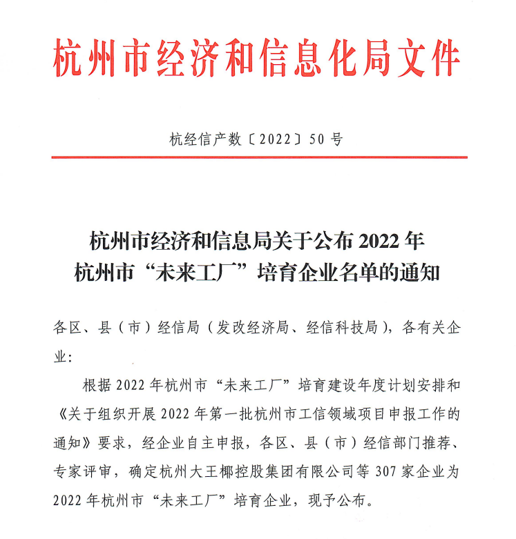 根據2022年杭州市“未來工廠”培育建設年度計劃安排和《關于組織開展2022年第一批杭州市工信領域項目申報工作的通知》要求,經企業自主申報,各區、縣(市)經信部門推薦、專家評審,浙江高泰昊能科技有限公司榮獲2022年杭州市“未來工廠”培育企業認定。